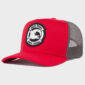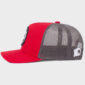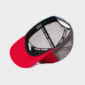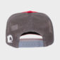 Mini Descrição : Boné brim vermelho e tela cinza com aplique bordado e silkscreen no frontal centralizado, possui ajuste de tamanho com até sete opções, interior todo personalizado, bordado no traseiro no lado esquerdo, aba modelo curva.